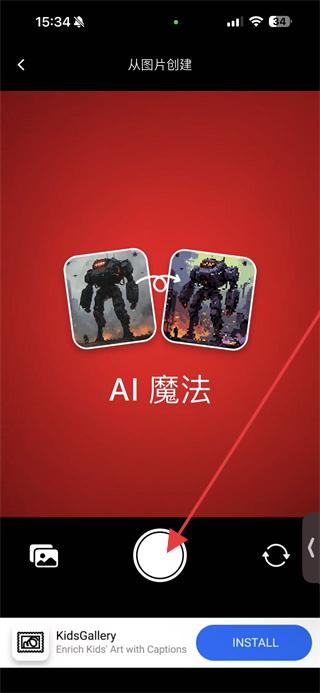 2、在從圖片創(chuàng)建頁面,點(diǎn)擊中間的拍攝按鈕或選擇圖片圖標(biāo)。