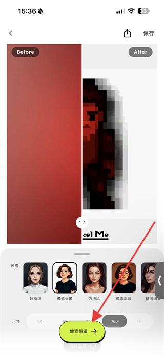 4、生成像素畫后,點(diǎn)擊像素編輯按鈕可進(jìn)行細(xì)節(jié)調(diào)整,最后點(diǎn)擊保存即可。