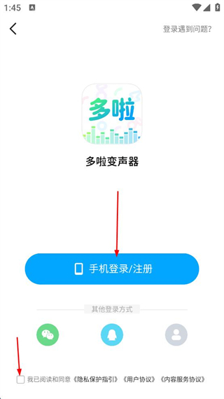 3、在登錄注冊(cè)頁(yè)面勾選已閱讀和同意相關(guān)協(xié)議,點(diǎn)擊手機(jī)登錄/注冊(cè)。