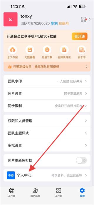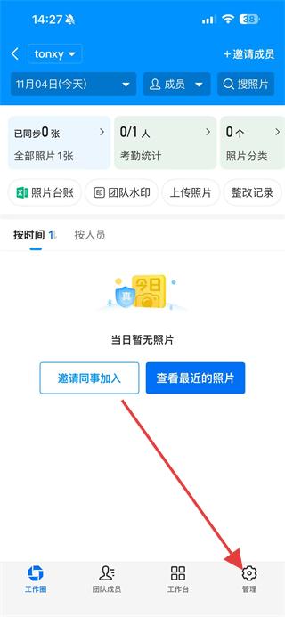 2、在團(tuán)隊(duì)頁(yè)面點(diǎn)擊右下角管理,進(jìn)入管理頁(yè)面。