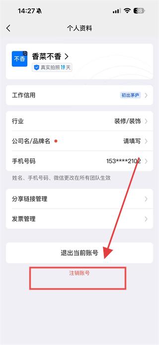 4、在個(gè)人資料頁(yè)面點(diǎn)擊注銷賬號(hào),即可完成今日水印相機(jī)團(tuán)隊(duì)的注銷操作。