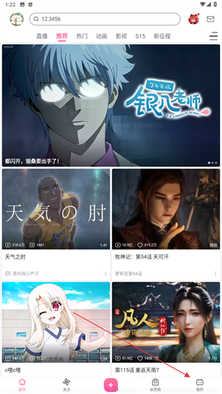 1、啟動嗶哩嗶哩的APP,進(jìn)入首頁點擊右下我的圖標(biāo)。