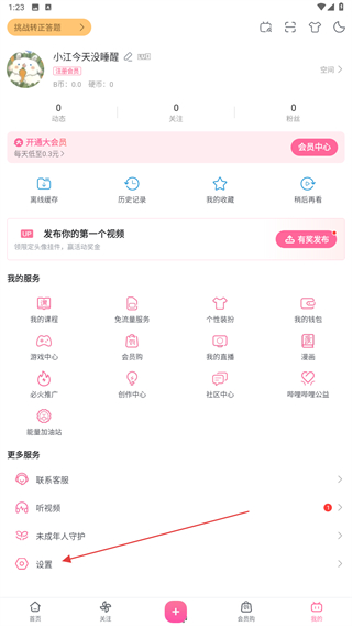 1、打開嗶哩嗶哩APP,在個人主頁內(nèi),點擊設(shè)置的功能按鈕。