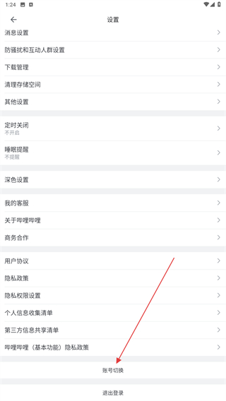 3、進(jìn)入設(shè)置的界面內(nèi),點擊下方賬號切換的功能按鈕。