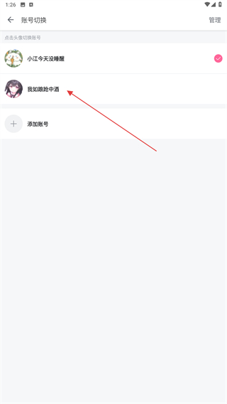 4、在賬號切換的頁面內(nèi),選擇并點擊要切換的賬號即可。