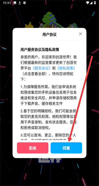 1、點(diǎn)擊“用戶服務(wù)協(xié)議及隱私政策”彈窗的“同意”,進(jìn)入登錄選擇界面。