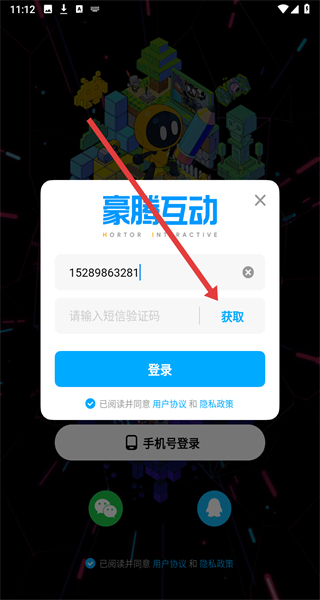3、輸入手機(jī)號(hào)碼,點(diǎn)擊“獲取”以獲取短信驗(yàn)證碼。