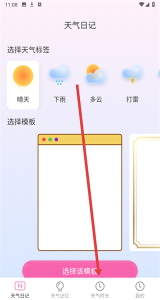 2、在天氣日記主界面點(diǎn)擊底部“天氣時(shí)光”,進(jìn)入天氣時(shí)光頁(yè)面。