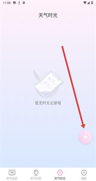 3、在天氣時(shí)光頁(yè)面點(diǎn)擊右下角“+”,進(jìn)入新建天氣時(shí)光界面。