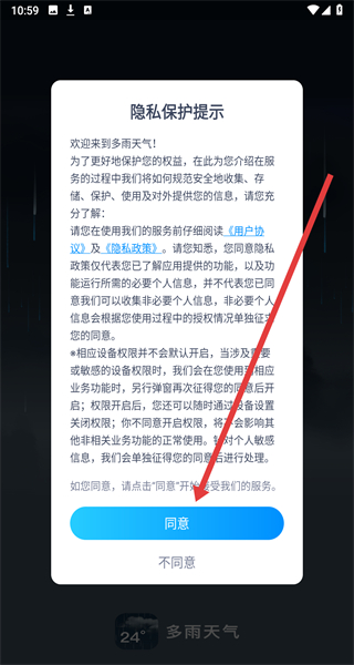 1、在多雨天氣的“隱私保護提示”彈窗點擊“同意”,進入地址管理頁面。