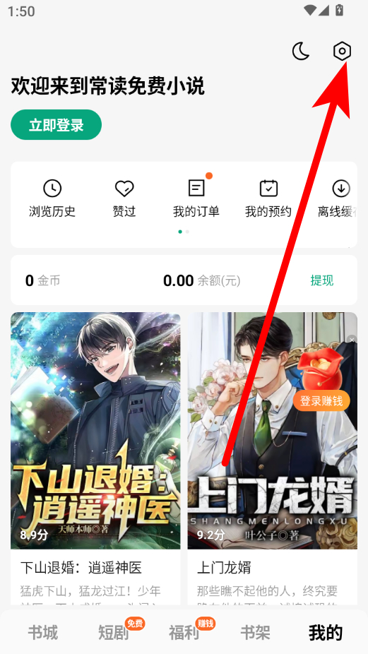 1、打開常讀小說APP,點擊底部導(dǎo)航欄我的選項,進入個人頁面。