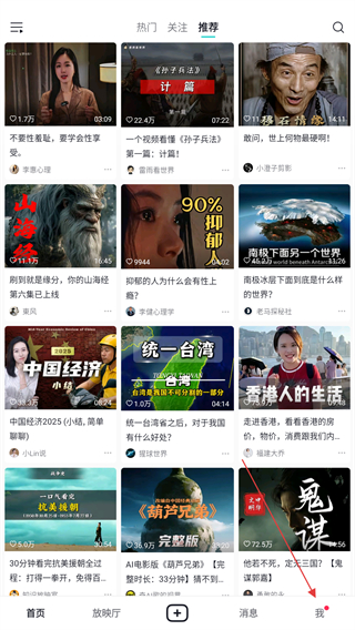 1、進(jìn)入到軟件的首頁之后可以看到推薦的視頻內(nèi)容;