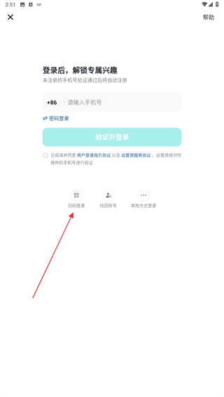 2、進(jìn)入登錄的界面內(nèi),用戶需點(diǎn)擊下方掃碼登錄的功能按鈕。