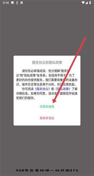 1、點(diǎn)擊“服務(wù)協(xié)議和隱私政策”彈窗的“同意并接受”,進(jìn)入APP主界面。