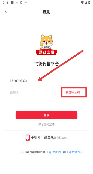 3、登錄頁輸入手機(jī)號,點(diǎn)擊“發(fā)送驗(yàn)證碼”,獲取短信驗(yàn)證碼。