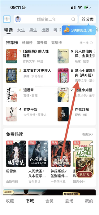 1、打開咪咕閱讀應用,在書城界面中,選擇一本想閱讀的小說。