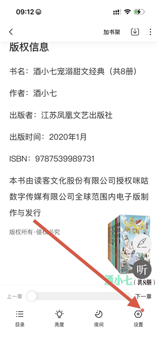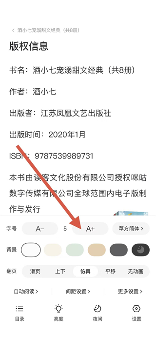 3、在閱讀界面,點擊設置選項,展開設置菜單。