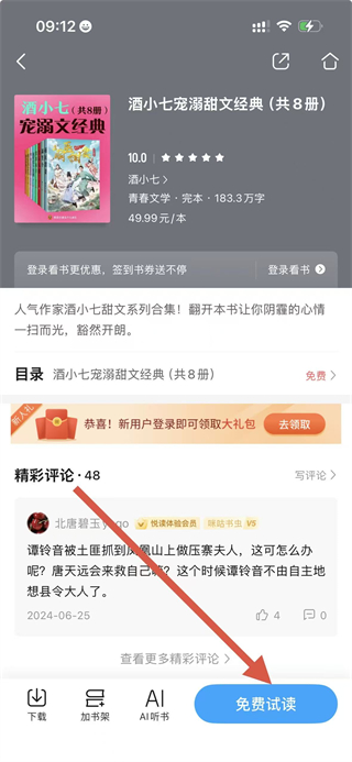 2、在書籍詳情頁面,點擊免費試讀選項,進入閱讀界面。