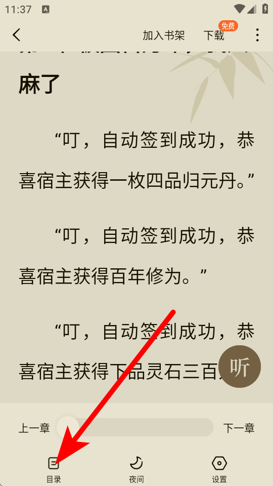 2、聽書模式,自動朗讀小說內(nèi)容,無需閱讀屏幕,輕松享受故事情節(jié);