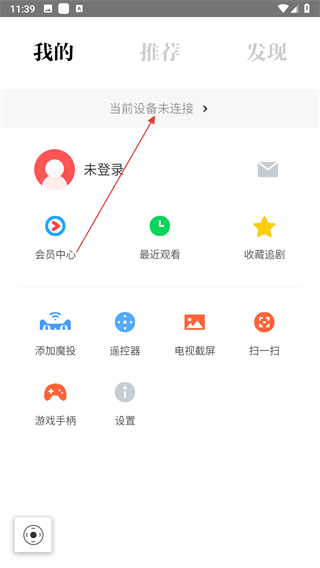 1、打開阿里TV助手APP,點擊當(dāng)前設(shè)備未連接選項。