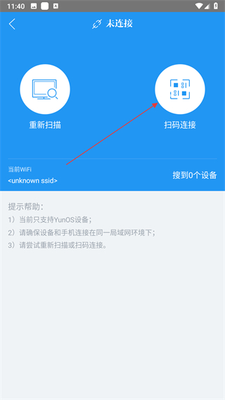 2、在未連接頁面,點擊掃碼連接按鈕,即可進入。