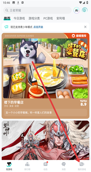 1、在游戲平臺主界面點擊右下角“我的游戲”,進入“我的游戲”頁面。