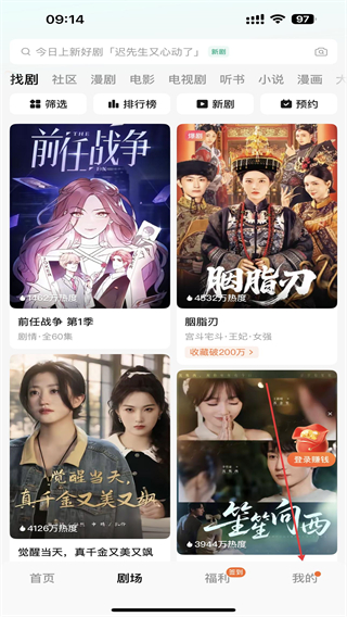 1、啟動紅果的應(yīng)用APP,進(jìn)入首頁點擊右下角我的按鈕。