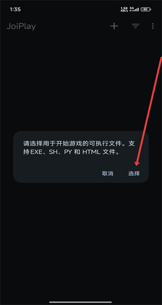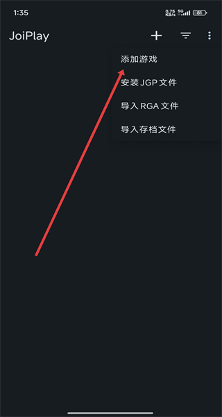 1、在JoiPlay主界面點擊右上角“+”按鈕,彈出功能菜單。