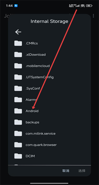 4、在目錄界面中點擊“Android”文件夾,繼續(xù)選擇游戲可執(zhí)行文件以完成添加。