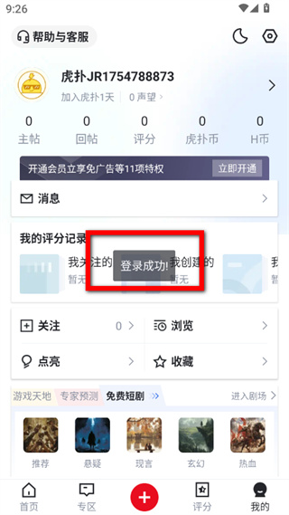 4、完成上述操作后,即可成功登錄虎撲賬號。