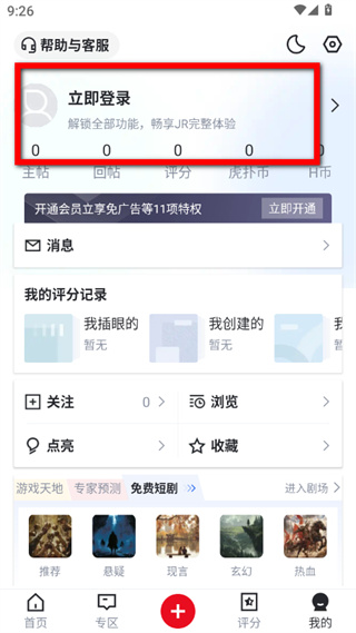 2、在個人界面,點擊立即登錄區(qū)域,進入登錄頁面。