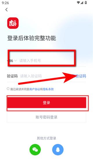 3、在登錄頁面,輸入手機號并獲取驗證碼,填寫后點擊登錄。