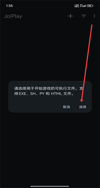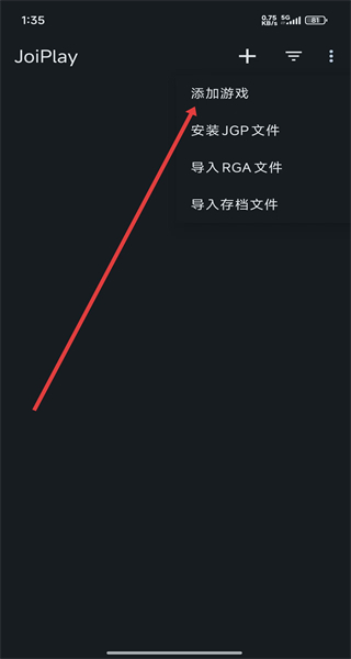2.添加游戲:打開joiplay模擬器,點(diǎn)擊右上角“+”選擇添加游戲,找到文件夾【精靈寶可夢(mèng)無(wú)限融合5.0.36 】,選擇【Game.exe 】。