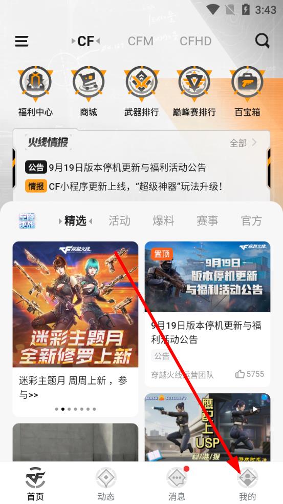 1、打開掌上穿越火線APP,點(diǎn)擊底部導(dǎo)航欄中的我的進(jìn)入個人頁面。