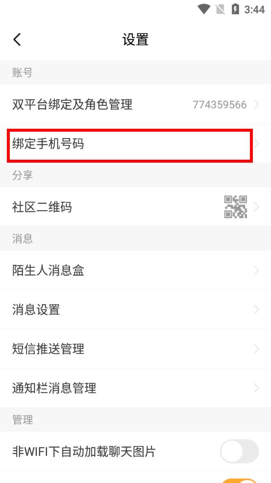 4、在設(shè)置頁面中找到綁定手機(jī)號碼選項(xiàng),點(diǎn)擊后按照提示完成手機(jī)號碼的綁定操作。
