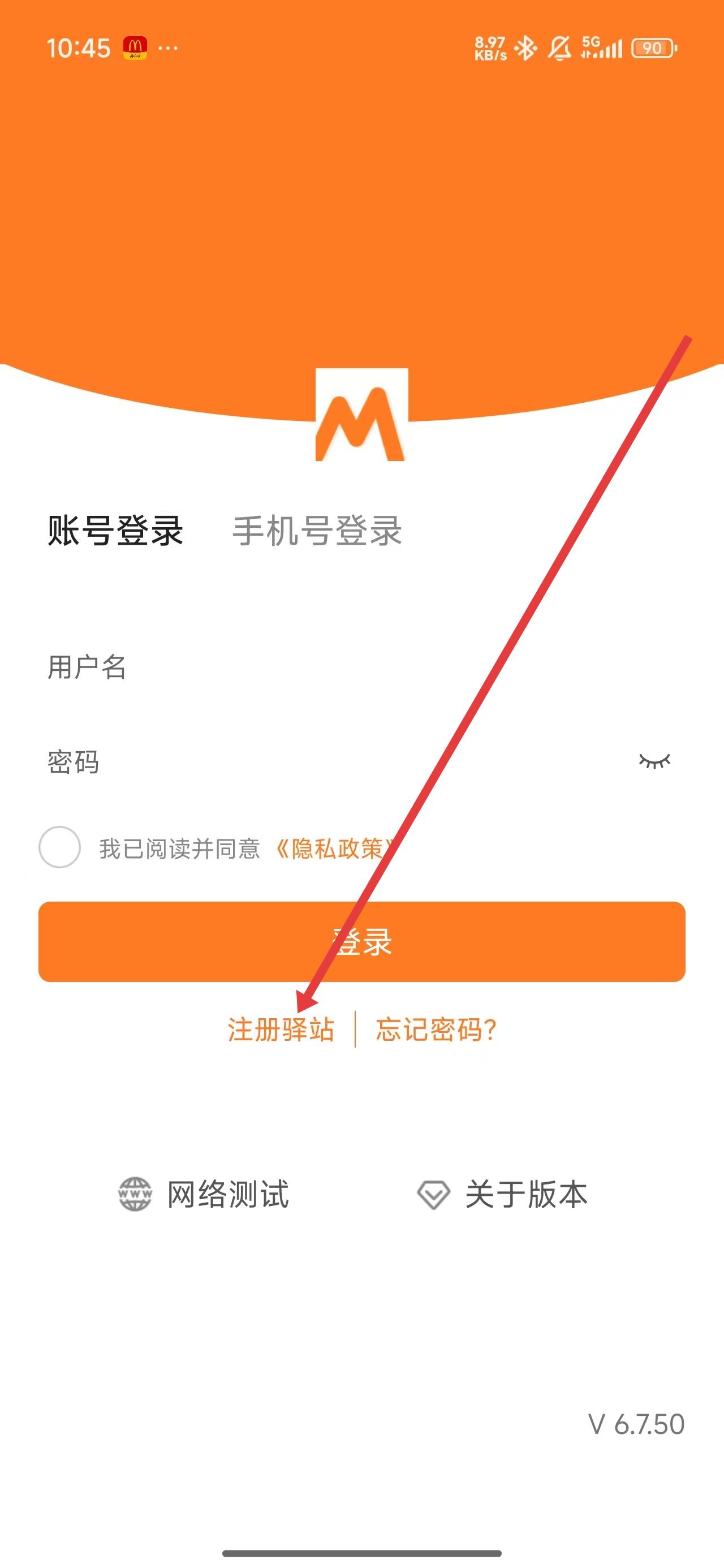 2、在進(jìn)入到登錄頁面中后,若沒有賬號可以點(diǎn)擊注冊驛站按鈕,進(jìn)行注冊操作。