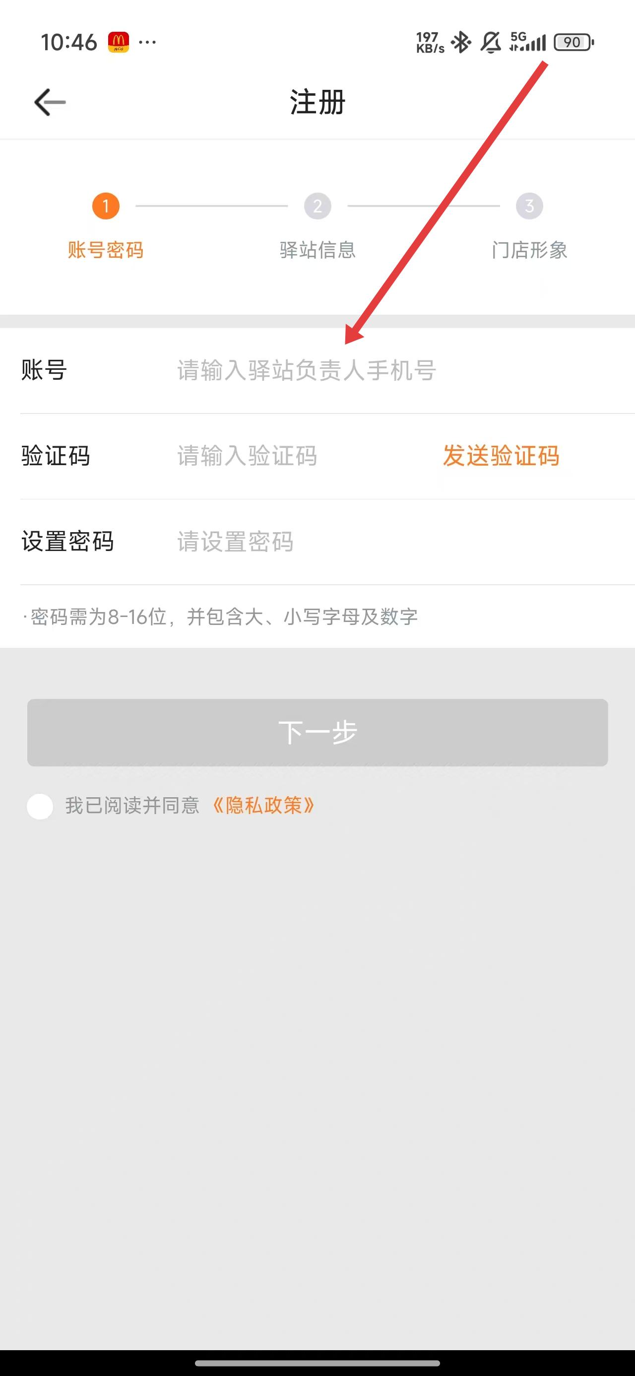 3、在跳轉(zhuǎn)到注冊頁面后,可以在賬號區(qū)域輸入負(fù)責(zé)人手機(jī)號,以獲取驗(yàn)證碼完成注冊。