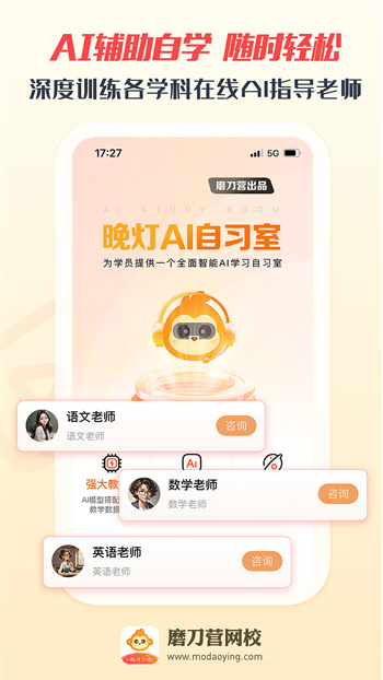 磨刀營(yíng)網(wǎng)校是一款專業(yè)的手機(jī)網(wǎng)校在線服務(wù)平臺(tái),無(wú)論是在線學(xué)習(xí)還是教學(xué)管理,它都能滿足我們的需求,在這里你能隨時(shí)訪問(wèn)課程內(nèi)容、答疑解惑,還能參與討論與其他學(xué)員互動(dòng),有了它我們就能輕松瀏覽和提問(wèn)相關(guān)知識(shí),使得學(xué)習(xí)變得更加便捷和高效。