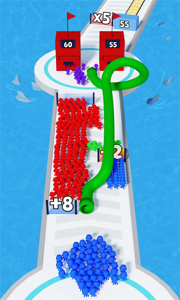 游戲的操作是非常的簡(jiǎn)單的,只需要我們不斷的在關(guān)卡里面擊敗敵人,進(jìn)入到不同的增益門中,增加自己的人數(shù),在最后的時(shí)刻,消滅其他的隊(duì)伍即可,游戲還有多種不同的道具可以使用,可以增加自己人數(shù),減少敵人的人數(shù)等效果,在遇到困難的時(shí)候在使用,可以幫助我們實(shí)現(xiàn)逆風(fēng)翻盤的作用,成功的擊敗強(qiáng)敵,成為最后的贏家。
