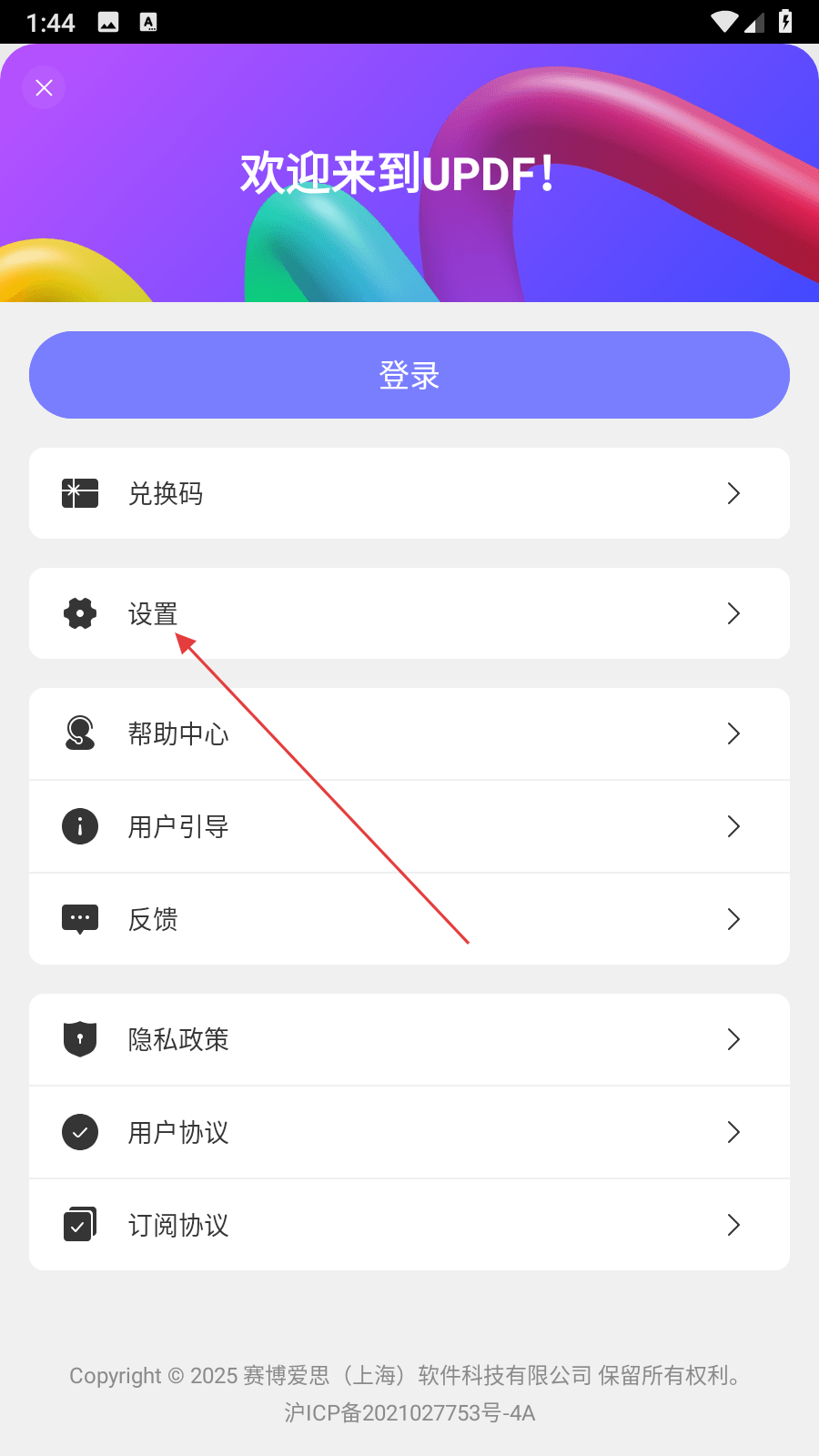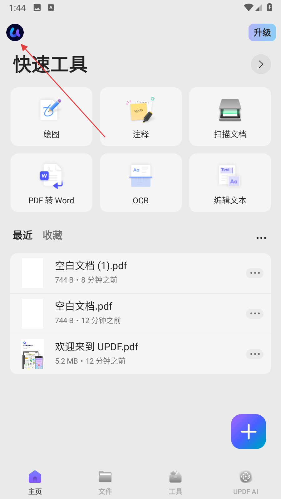 1、打開(kāi)UPDF應(yīng)用,點(diǎn)擊界面左上角的UPDF圖標(biāo)。