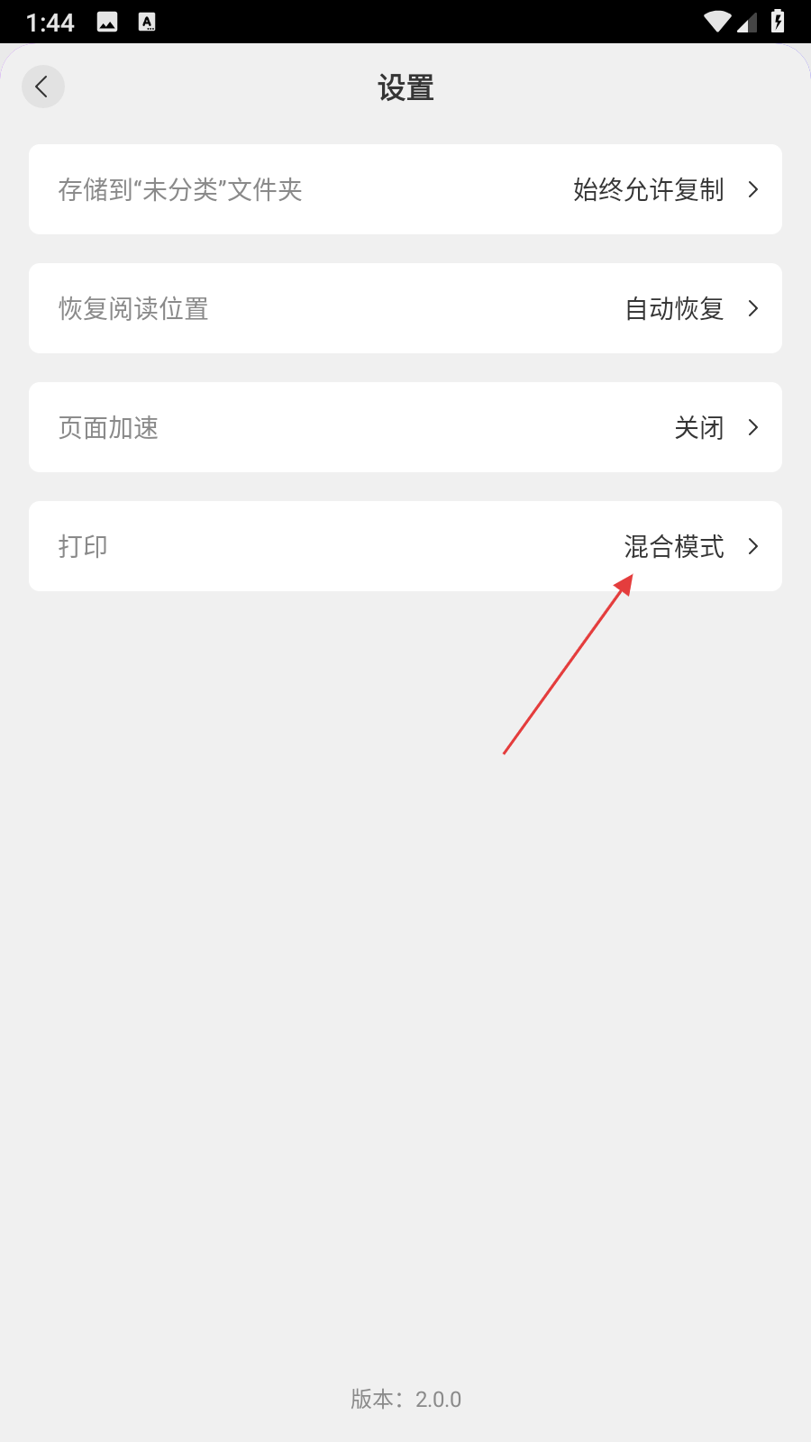 3、在設(shè)置界面里,點(diǎn)擊打印選項(xiàng),進(jìn)入打印模式選擇頁(yè)面。