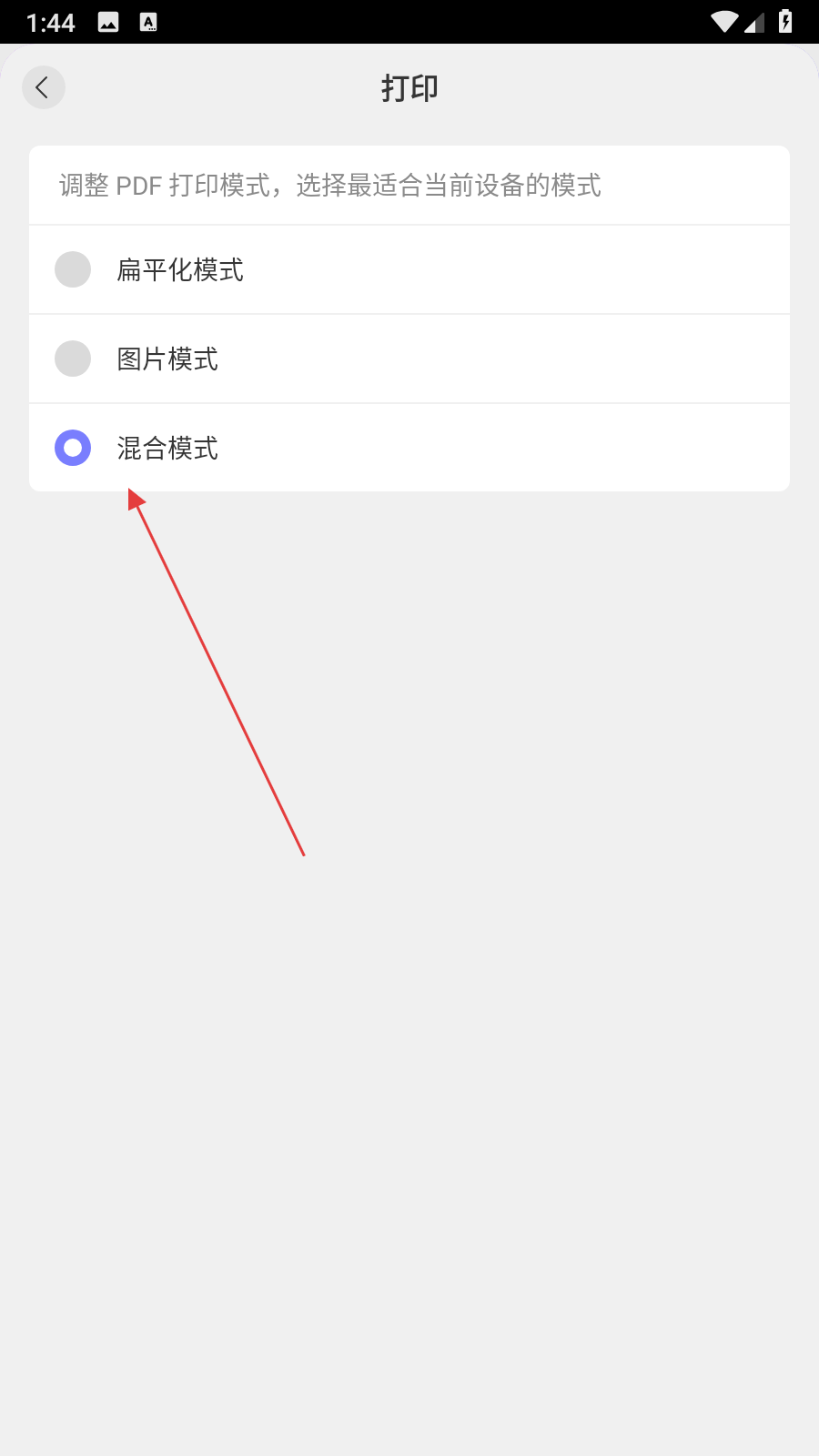 4、根據(jù)需求,在打印模式選擇頁(yè)面中點(diǎn)擊對(duì)應(yīng)模式前的單選按鈕,即可完成打印模式的調(diào)整。