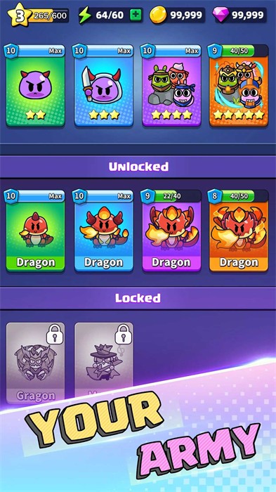 史萊姆快沖是一款充滿歡樂和挑戰(zhàn)的策略對戰(zhàn)類游戲,玩家將進入一個被怪物入侵的王國,作為戰(zhàn)斗指揮官,你需要帶領你的小兵們勇敢抵御怪物的侵襲,并最終擊敗他們的首領,每個關卡都有著獨特的故事和挑戰(zhàn),玩家不僅要面對各種類型的怪物,還要解決一系列難題和謎題來推動劇情的發(fā)展。