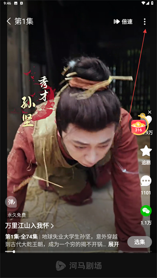 3、進(jìn)入播放的頁面內(nèi),點(diǎn)擊右上角三個(gè)點(diǎn)的功能圖標(biāo)。