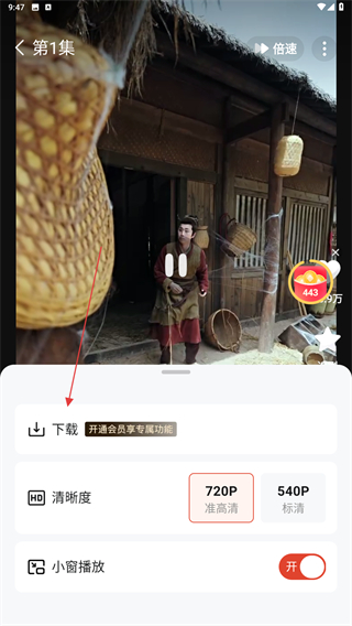4、在下方彈出的菜單欄中,點(diǎn)擊下載的按鈕即可開始下載短劇。