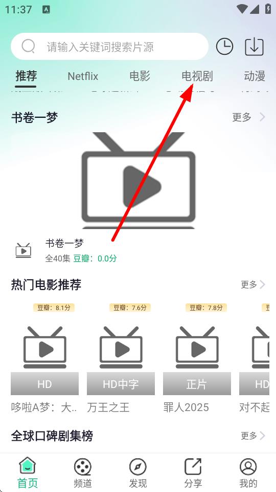 1、打開劇白白應(yīng)用,在首頁點(diǎn)擊上方導(dǎo)航欄中的電視劇選項(xiàng)。