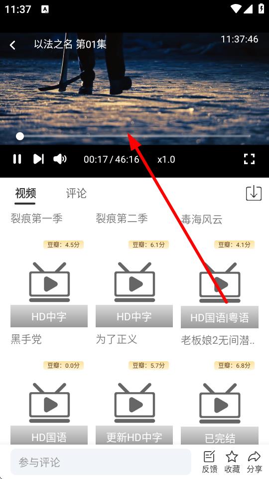 4、點(diǎn)擊集數(shù)后進(jìn)入播放界面,即可觀看所選電視劇內(nèi)容。