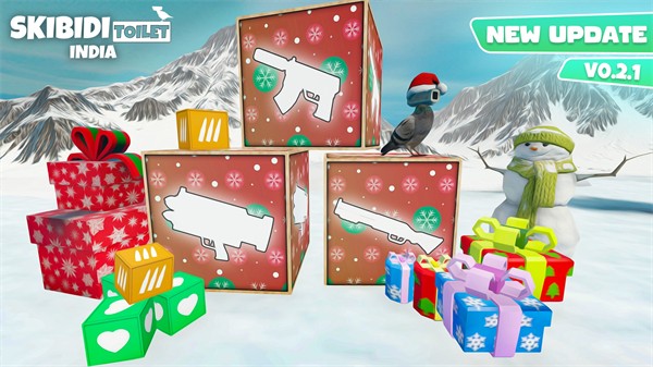 印度斯基比迪馬桶人最新版是一款第三人稱視角的射擊冒險(xiǎn)類游戲,玩家將會(huì)來到一個(gè)充滿了冰雪的世界之中,這個(gè)世界里有著各種奇怪的馬桶人,玩家需要利用自己手中的槍殺死這些馬桶人,并一步步的沿著木頭棧道向前移動(dòng),在移動(dòng)的過程中玩家將會(huì)看到很多被彩色氣球吊在空中的禮物盒子,這些盒子里面有一些槍支等工具,將會(huì)為玩家提供便利。