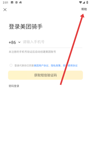 1、在登錄時(shí)如果遇到驗(yàn)證碼收不到的情況,可以點(diǎn)擊右上角的幫助按鈕解決。