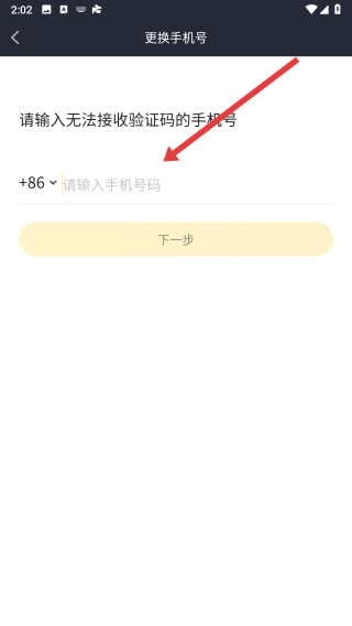 3、在跳轉(zhuǎn)到更換手機(jī)號(hào)頁面中,點(diǎn)擊輸入框填寫無法收到驗(yàn)證碼的手機(jī)號(hào)。